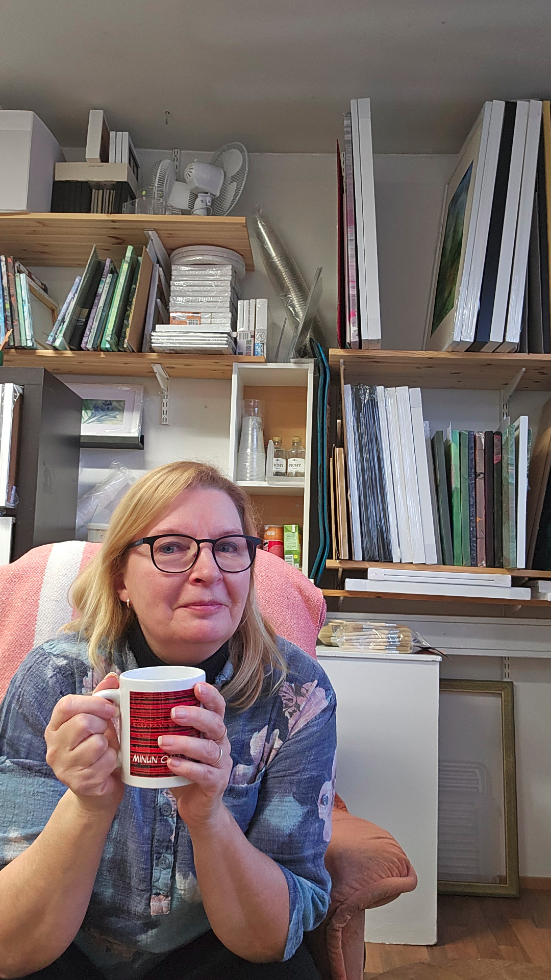 Työskentelen pääasiassa akryylein, akvarellein ja musteilla. Käytän niitä monella eri tapaa. Saatan tehdä jotain kuvaavaa, mutta en tee sitä valokuvamaisesti vaan suurpiirteisesti. Pieniä siveltimiä käytän melko vähän ja usein sormet sekä erilaiset esineet toimivat siveltiminäni. Kerrostan töitä, alta voi kuultaa läpi työn edellinen vaihe tai sieltä voi näkyä jokin pintastruktuuri. Lopputulos on abstraktin ja esittävän sekä vaikutelman ja tunteen yhdistelemistä. Värimaailmani on laaja, mutta pyrin löytämään harmonisen kokonaisuuden.
